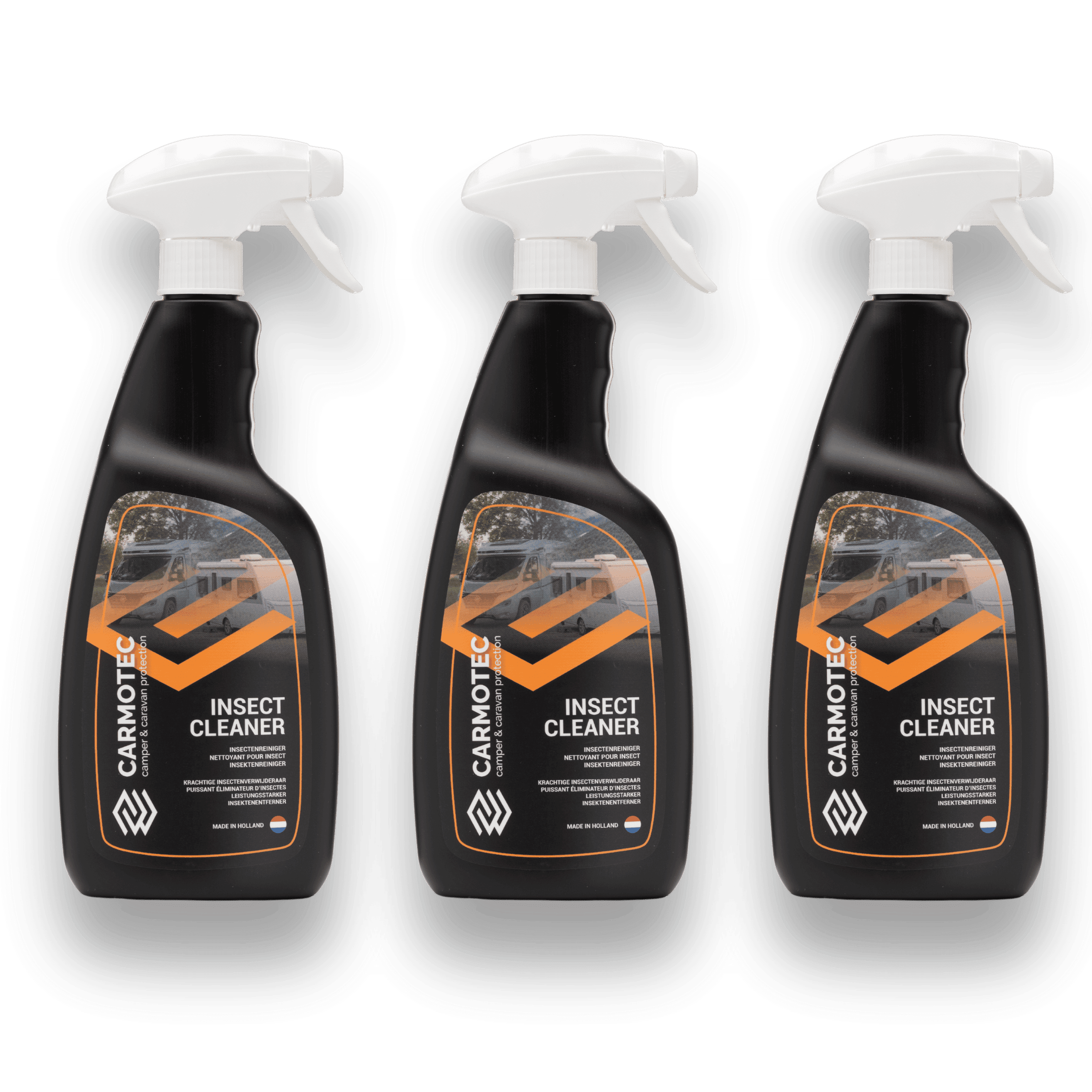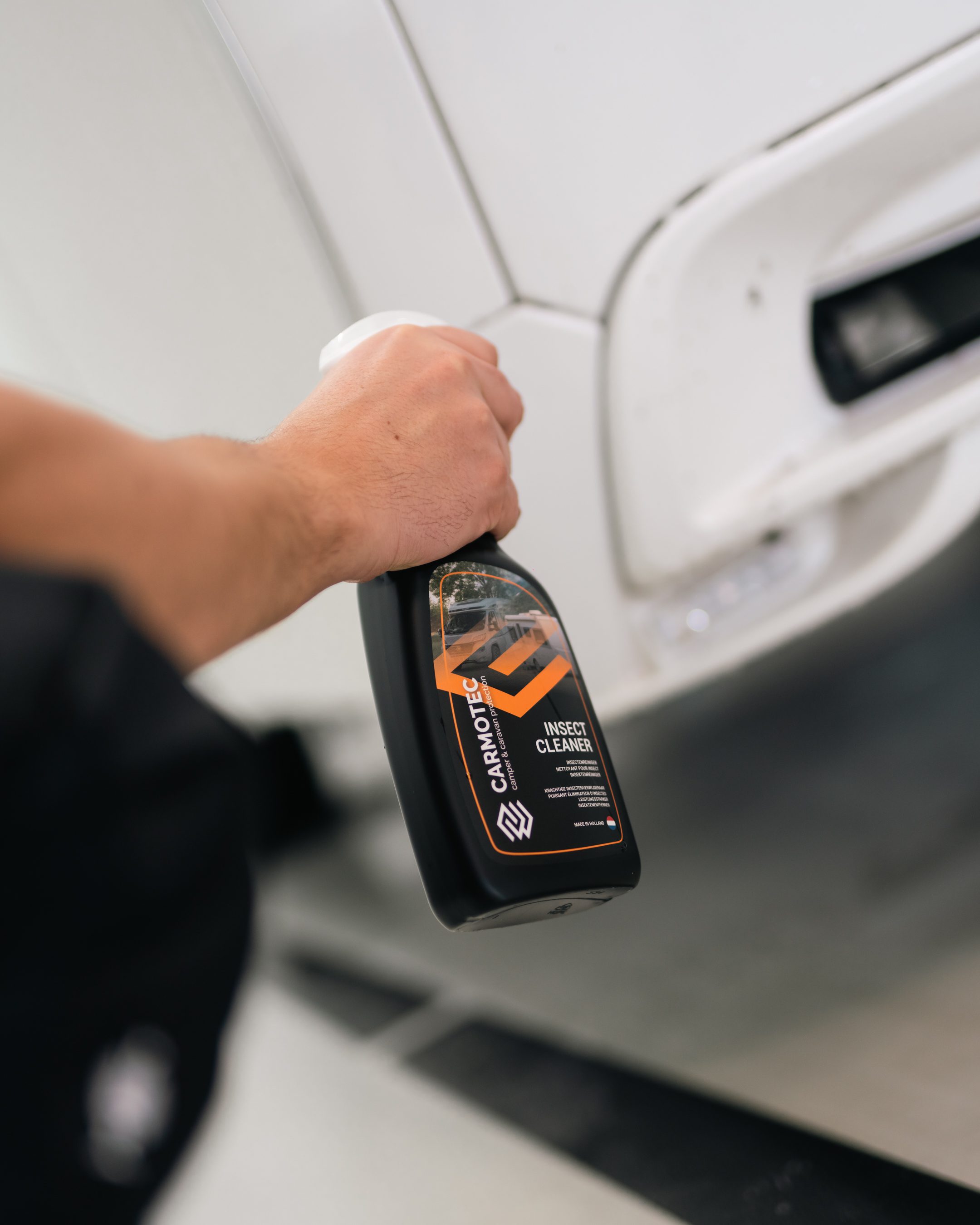 Tijdens uw reis verzamelen insecten zich vaak op de voorkant van uw camper of caravan. Deze kunnen hardnekkig vastzitten en zijn zonder het juiste product lastig te verwijderen. Carmotec Insectenreiniger is speciaal ontwikkeld om insectenresten effectief los te weken, zonder schade te veroorzaken aan coatings, gelcoat of nano-coatings.