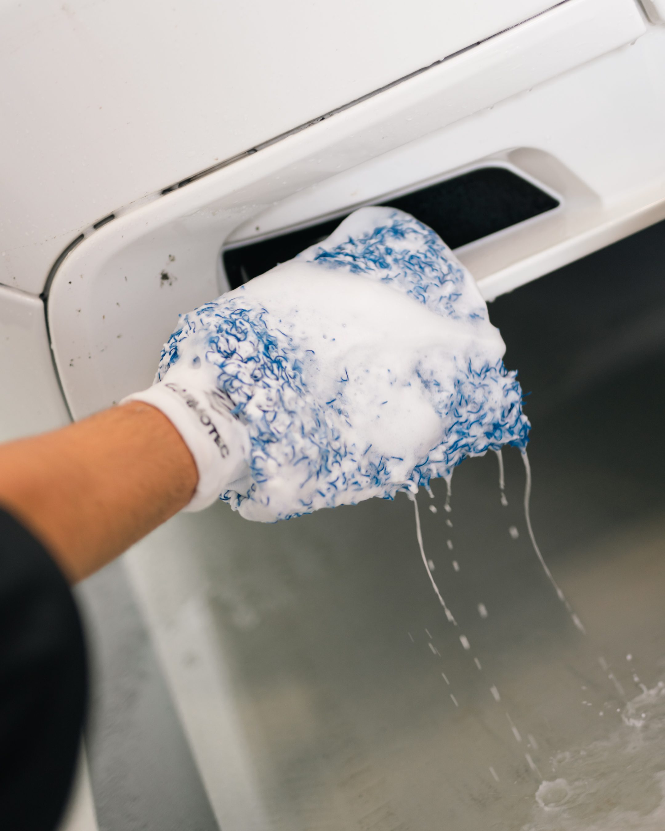 Laat de Insectenreiniger 30 seconden intrekken op het oppervlak, en doe het af met shampoo en een zachte handschoen.